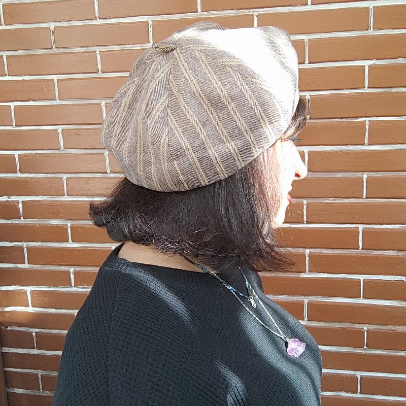 کلاه فرانسوی (برت) پفی مخمل وارداتی | راه راه
