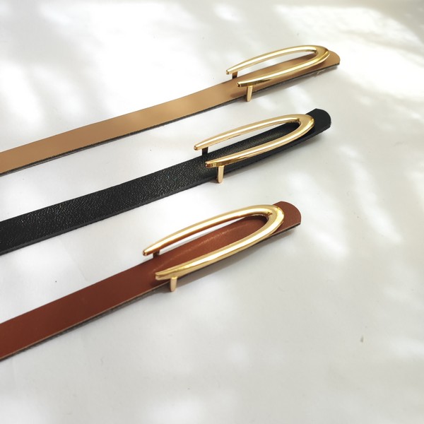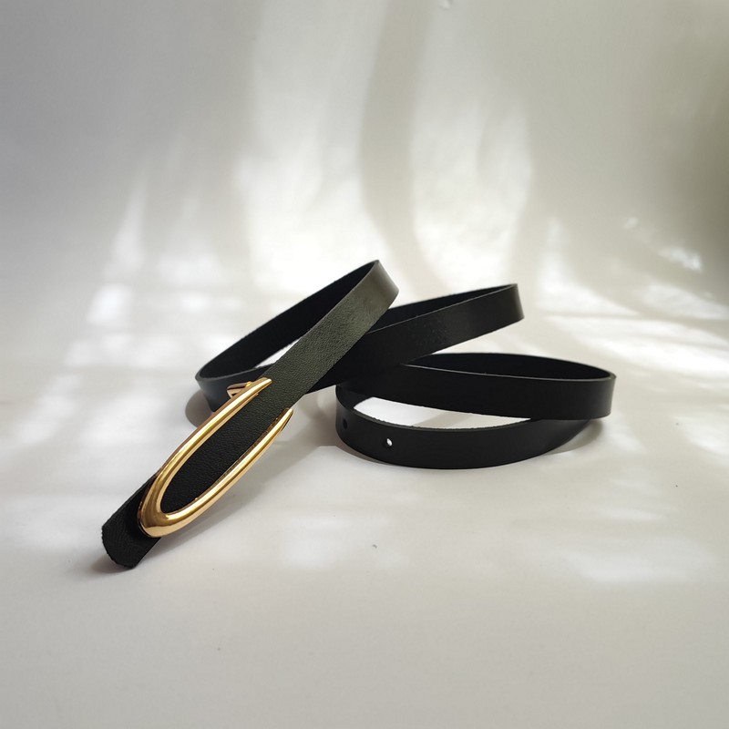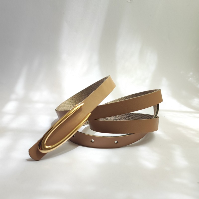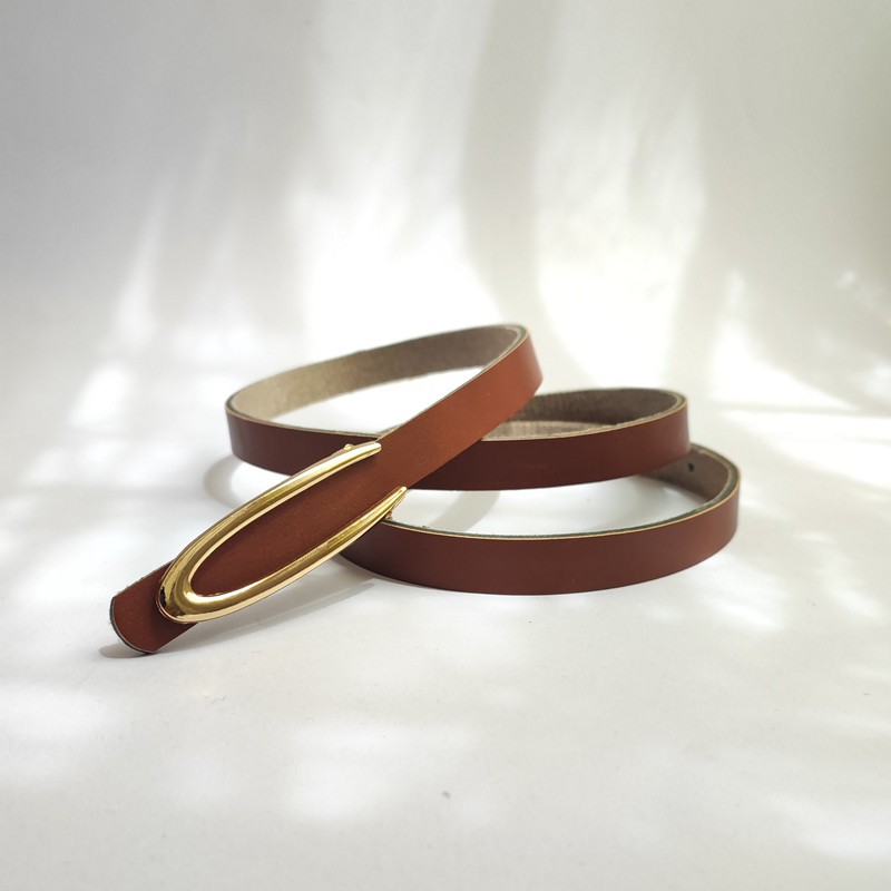 کمربند چرمی زنانه باریک با سگک طلایی – مدل مارال