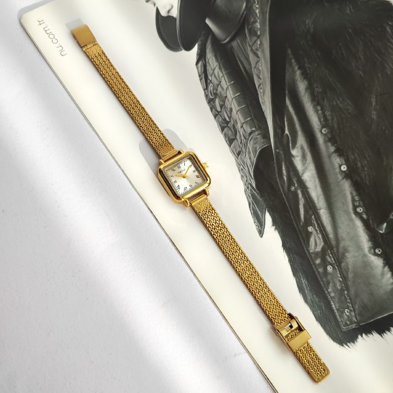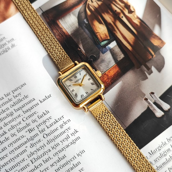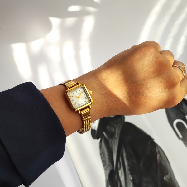 ساعت مچی طلایی مربعی زنانه نایدو Naidu | با حروف یونانی