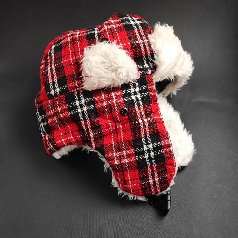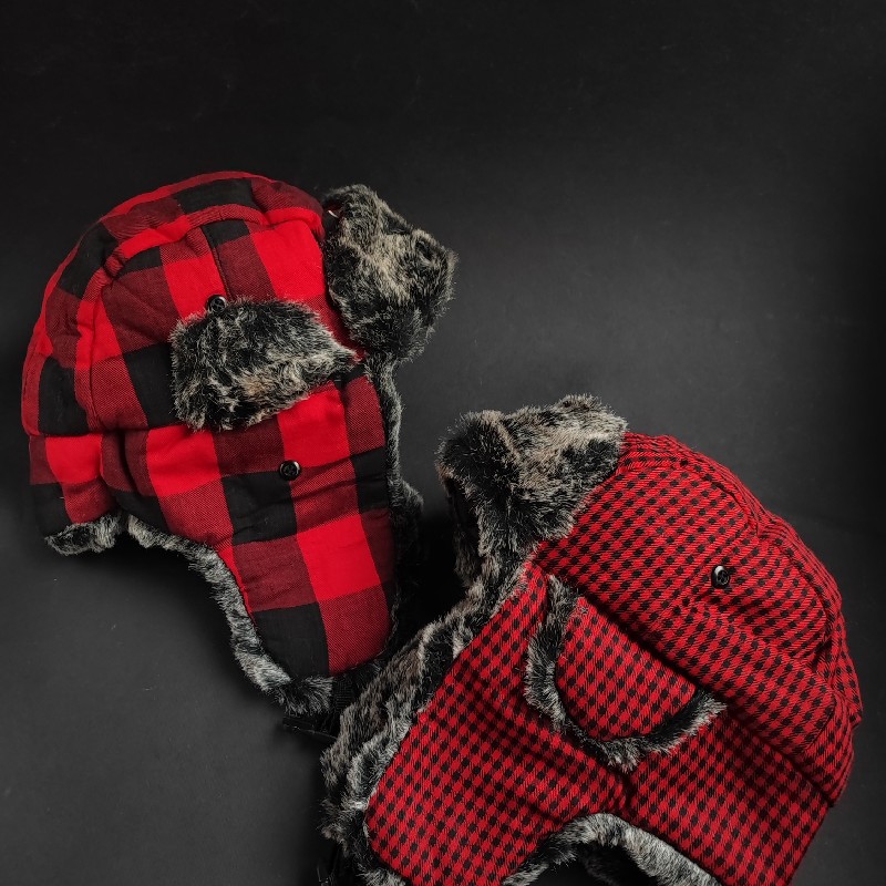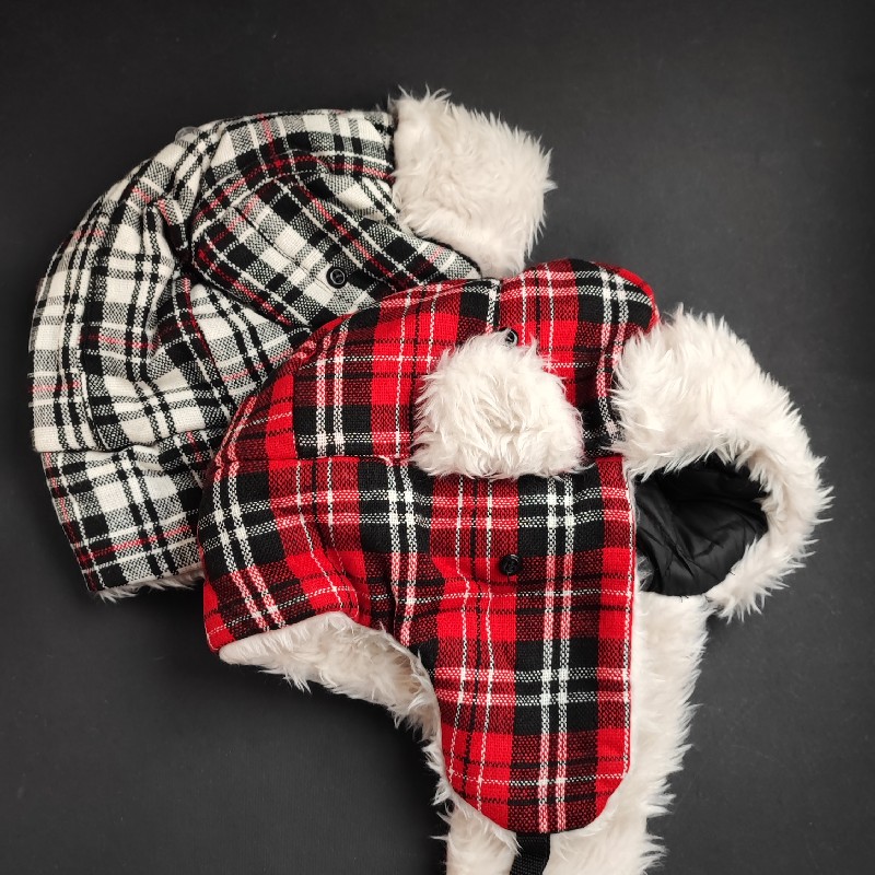 کلاه ترپر زمستانی چهارخانه با لبه برگردان خز